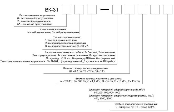 Структура обозначений вибропреобразователей серии ВК-310: