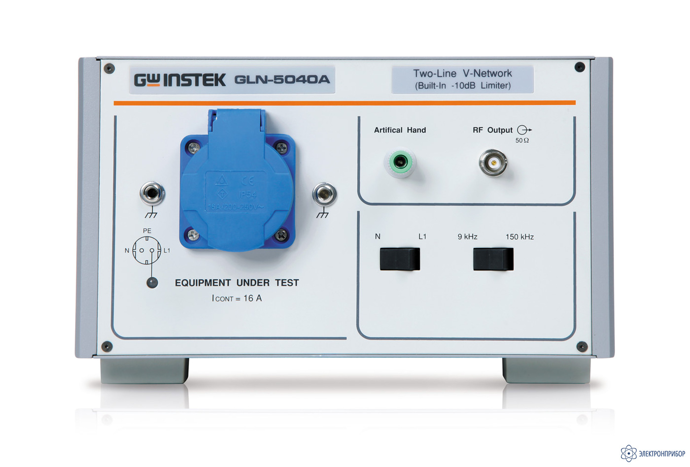 GLN-75040A - это 2-проводный V образный эквивалент сети для измерения помех сети питания, вызванных потребителем при анализе ЭМС. Предназначен для измерения напряжения индустриальных радиопомех вызванных тестируемым устройством.