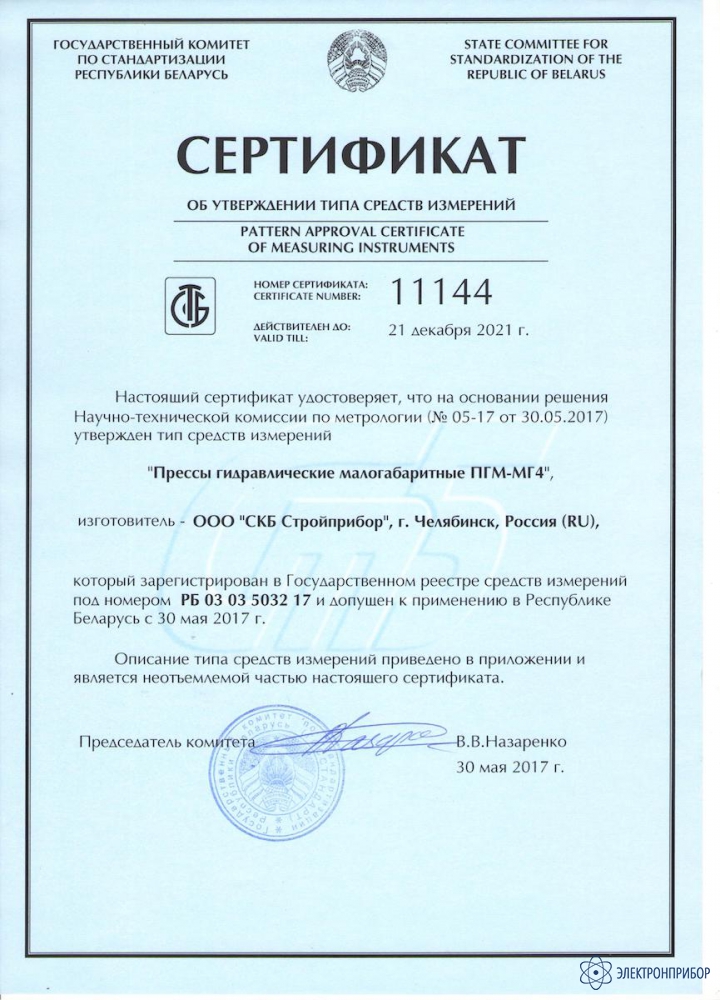Назначение пресса испытательного гидравлического малогабаритного ПГМ-1000МГ4: