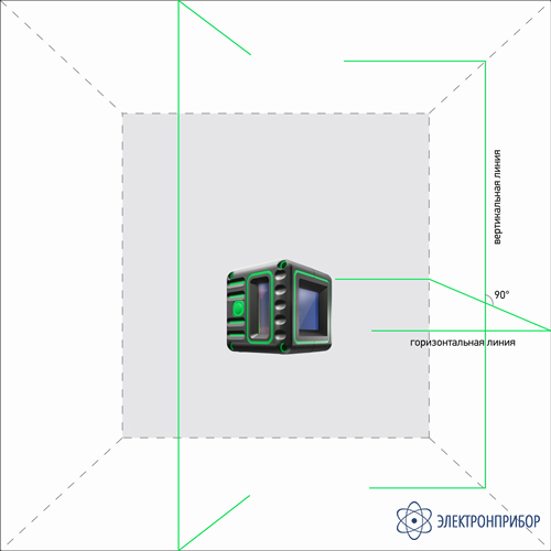 Пересекающиеся вертикальные линии под 90°. С помощью вертикальных линий пересекающихся под прямым углом (угол между вертикальными лазерными линиями 90°) можно быстро планировать деление помещений, строить перегородки, производить укладку напольной плитки и т.д. Лазерные линии покажут положение будущих стен. Меняя положение уровня можно быстро оценить размеры планируемого помещения.