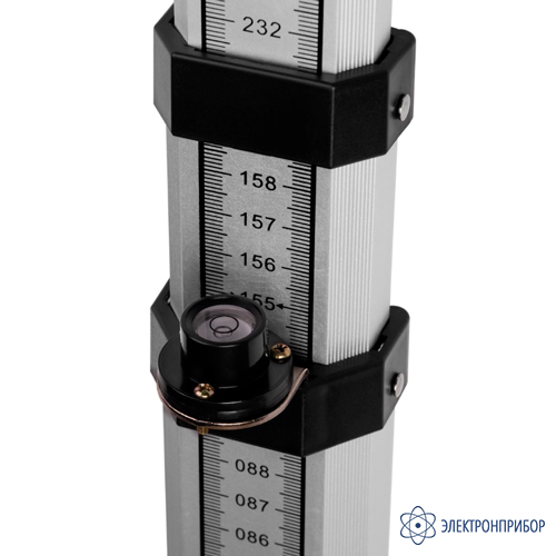 Выделение на миллиметровой шкале цифровых показателей, соответствующих дециметровым делениям, упрощает снятие результатов измерений за счет лучшей наглядности. Для проверки правильности вертикализации инструмента на точке изменений в момент считывания показаний предусмотрена возможность установки съемного пузырькового уровня с круглой колбой.