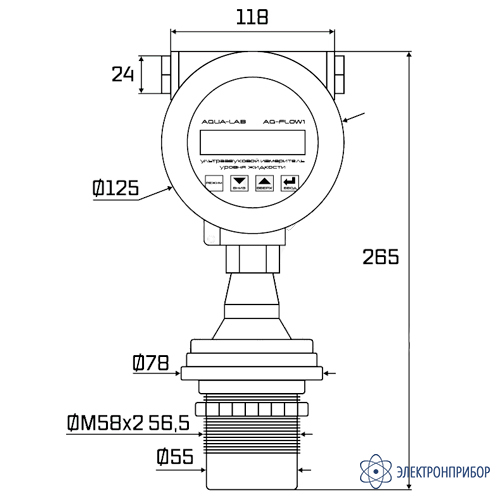 Описание промышленного ультразвукового измерителя скорости потока AQUA-LAB AQ-FLOW1-RS485: