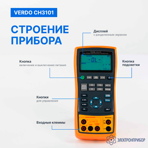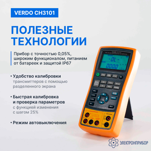 Профессиональный калибратор VERDO CH3101 обладает высокой точностью до 0,05% и сочетает в себе широкий функционал: