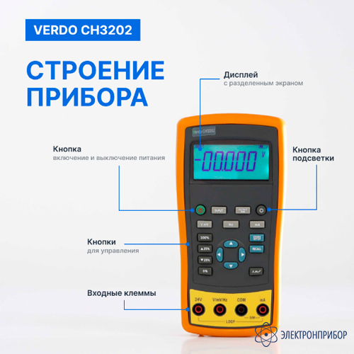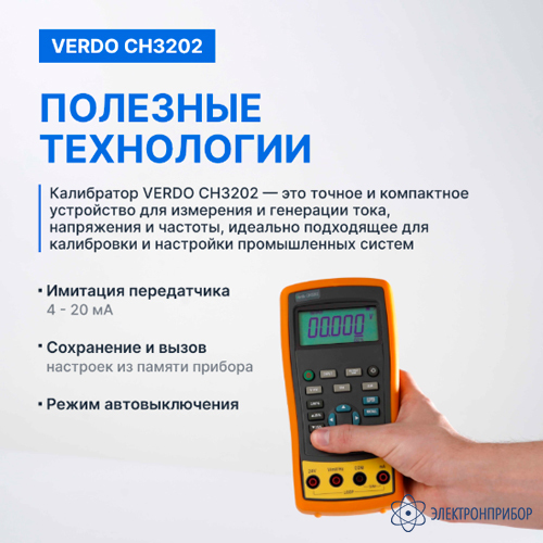 VERDO CH3202 — калибратор токовой петли с функцией измерения, 0,02%
