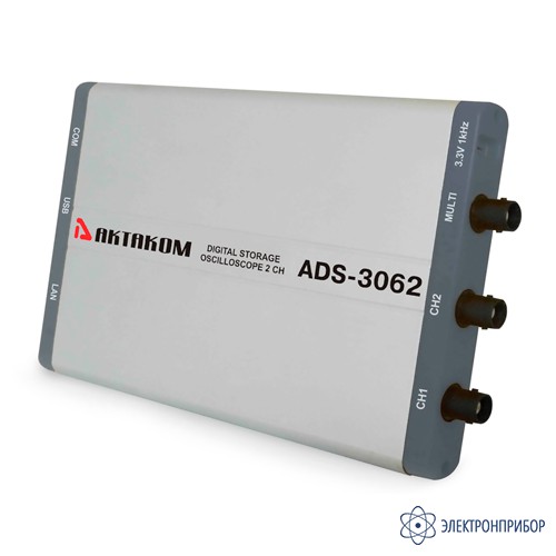 Осциллограф ADS-3062 - это первый цифровой USB осциллограф с глубиной записи 10 миллионов точек на канал. Осциллограф имеет поплосу пропускания 60 МГц при большой частоте дискретизации до 500 Мвыб/с. Отличительной чертой ADS-3062L является ультратонкий (всего 18 мм) корпус. Цифровой осциллограф ADS-3062 функционально схож с серией цифровых осциллографов Актаком ADS-2ххxM и ADS-2хххMV. USB интерфейс.
