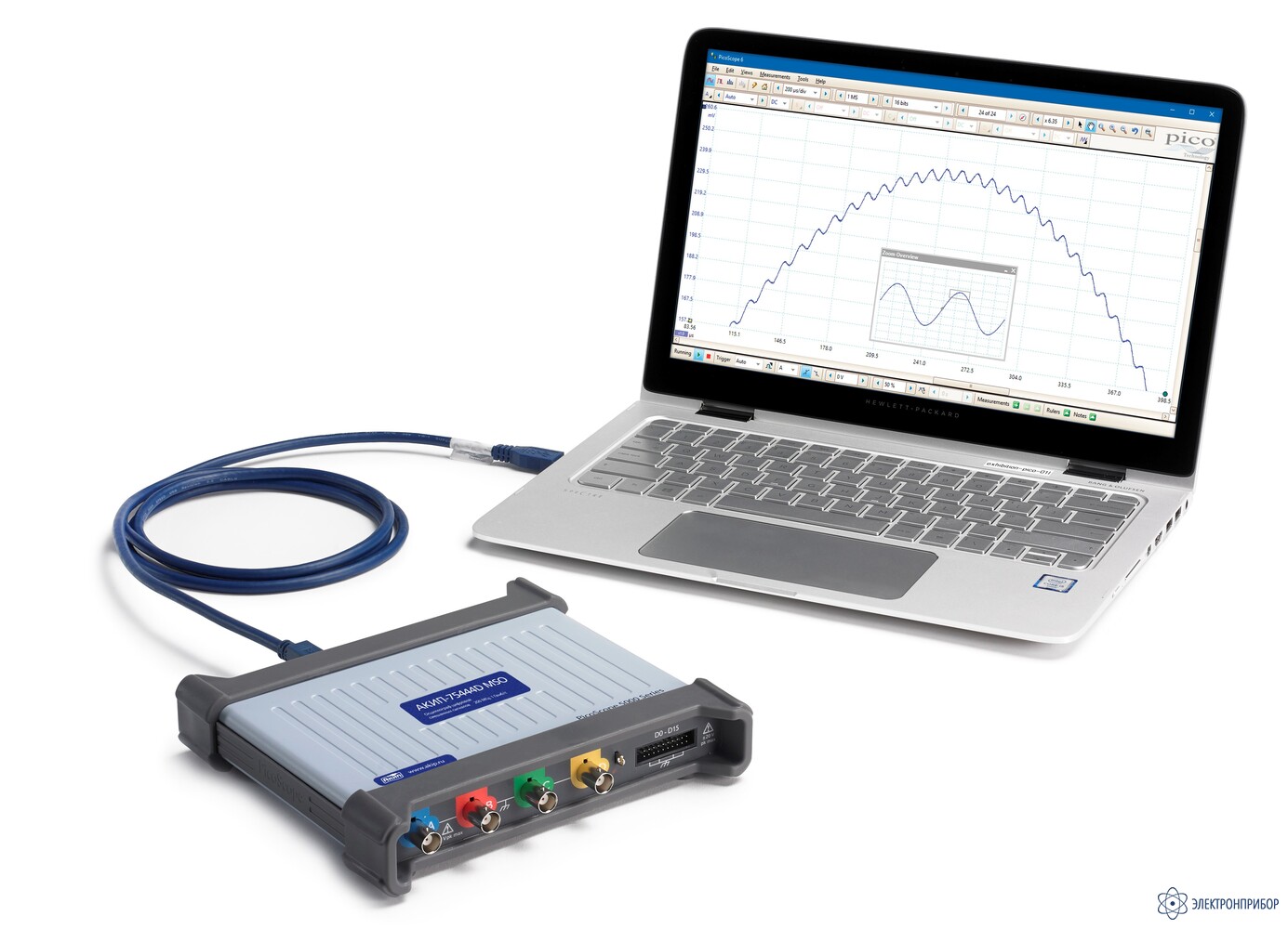 Осциллографы имеют сегментированную память (запись до 10.000 сегментов), а также поддерживают функцию «USB streaming». Функция представляет собой непрерывную потоковую оцифровку входного сигнала с передачей отсчетов по интерфейсу сразу на управляющий ПК. При использовании программного обеспечения PicoScope 6 максимальная частота дискретизации будет составлять 20 МГц. Ресурсы памяти компьютера для регистрации данных – 100 МБ (установка управляющей программы). Минимальный Кразв, при котором осциллограф переходит в режим сбора данных напрямую на внешний компьютер, выбирается пользователем и может составлять от 200 мс/дел. Максимальное входное напряжение ±20 В (защита входа ±100 DC+ACпик, входной импеданс 1 МОм/ 13 пФ.