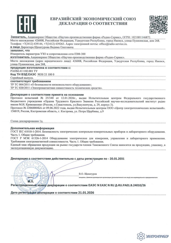 ПЗФ-300 — измеритель параметров УЗО и сопротивления сети