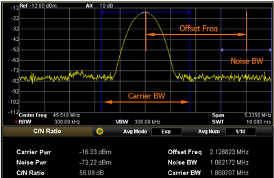 - мощности в соседних каналах (ACP: Adjacent Channel Power);