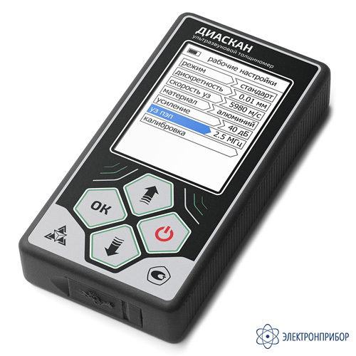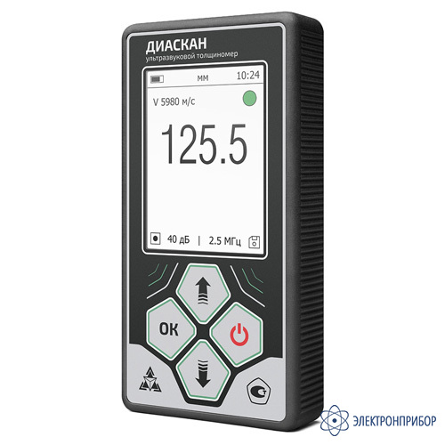 Толщиномер ДИАСКАН предназначен для измерения толщины изделий, изготовленных из материалов с затуханием ультразвуковых колебаний, позволяющим получить эхо-сигналы, отраженные от конструкционных поверхностей с использованием ультразвуковых пьезопреобразователей по ГОСТ 26266.