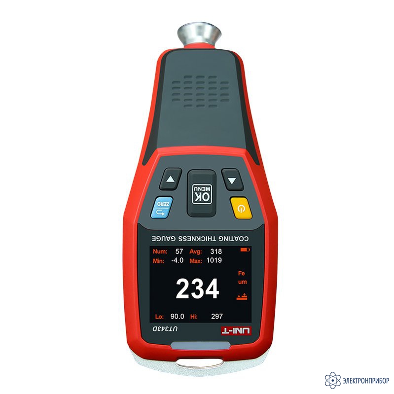 UNI-T UT343D – это толщиномер, использующийся для быстрого и точного измерения толщины покрытия на магнитных и немагнитных металлах без повреждения покрытия. При попадании тестируемого покрытия в заданный диапазон, устройство выдает звуковой сигнал, а также оповещает об этом при помощи мигающих светодиодов.
