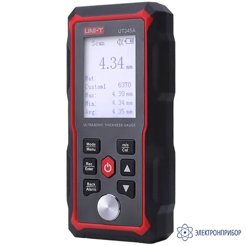 Толщиномер UNI-T UT345A – цифровой прибор неразрушающего контроля с микропроцессорным управлением, с рабочим диапазоном от 1 до 300 мм, реализующий ультразвуковую технологию измерений. Данное изделие поддерживает несколько рабочих режимов и позволяет определять толщину целевых объектов, в том числе труб диаметром от 20 мм, а также выявлять истончение изделий и деталей вследствие коррозии, механического износа и тому подобного.