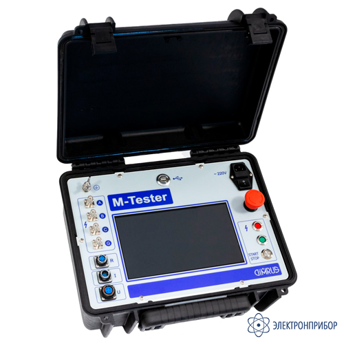 - Цветной экран размером 10” для отображения информации и управления всеми функциями прибора M-Tester.
