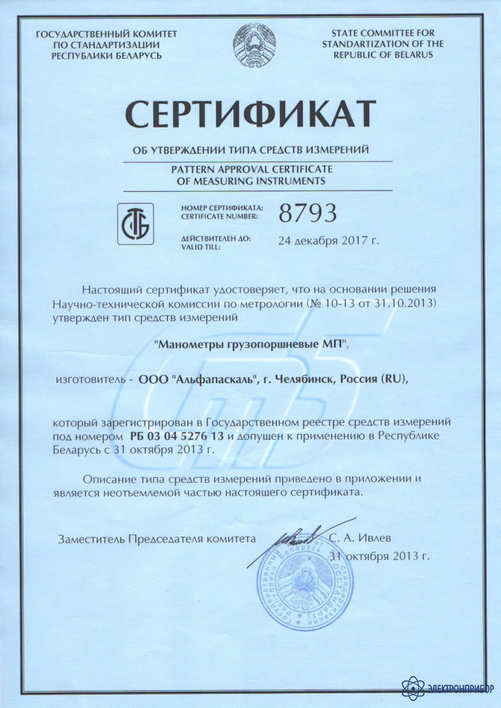 МП-6 (кл.т. 0,05), манометр грузопоршневой с классом точности 0,05
