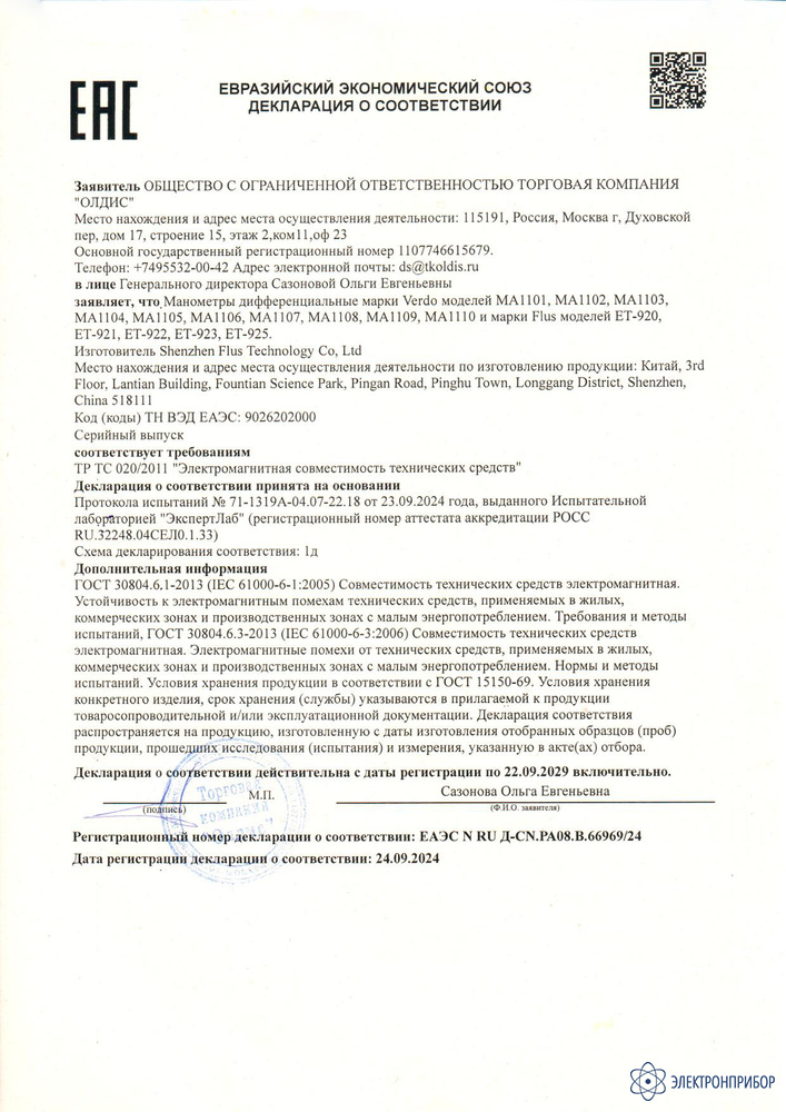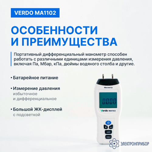 VERDO MA1102 — манометр дифференциальный, ±34,47 кПа/±0,3%