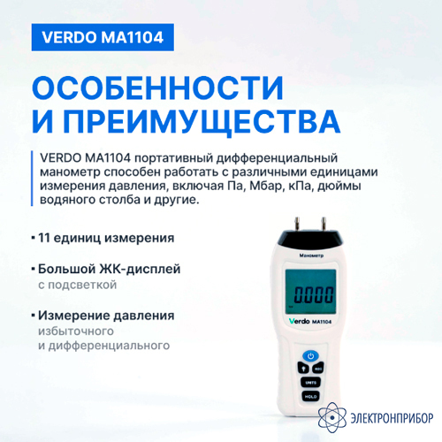 VERDO MA1104 — манометр дифференциальный, ±206,8 кПа/±0,3%