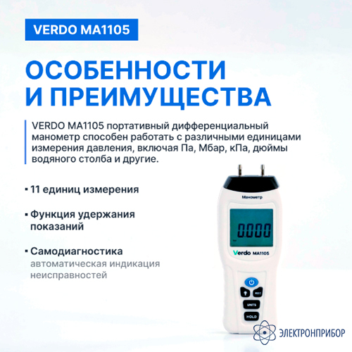 Особенности манометра дифференциального, ±517,1 кПа/±0,3% VERDO MA1105: