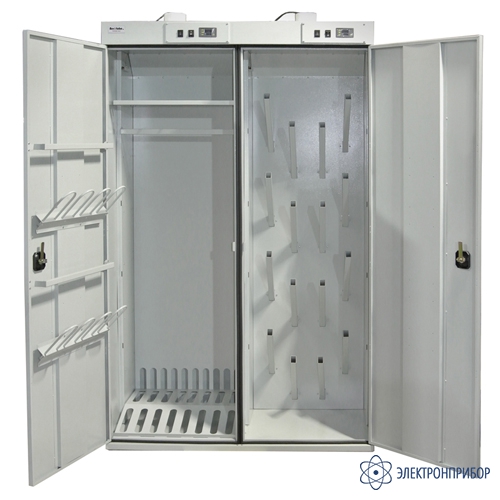 Сушильный шкаф ШС-4-8 предназначен для сушки 4-х комплектов верхней одежды, 8 пар обуви, 4 пар перчаток и головных уборов. Шкаф обеспечивает быструю и мягкую сушку, исключая коробление материала обуви и одежды.