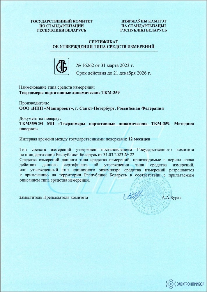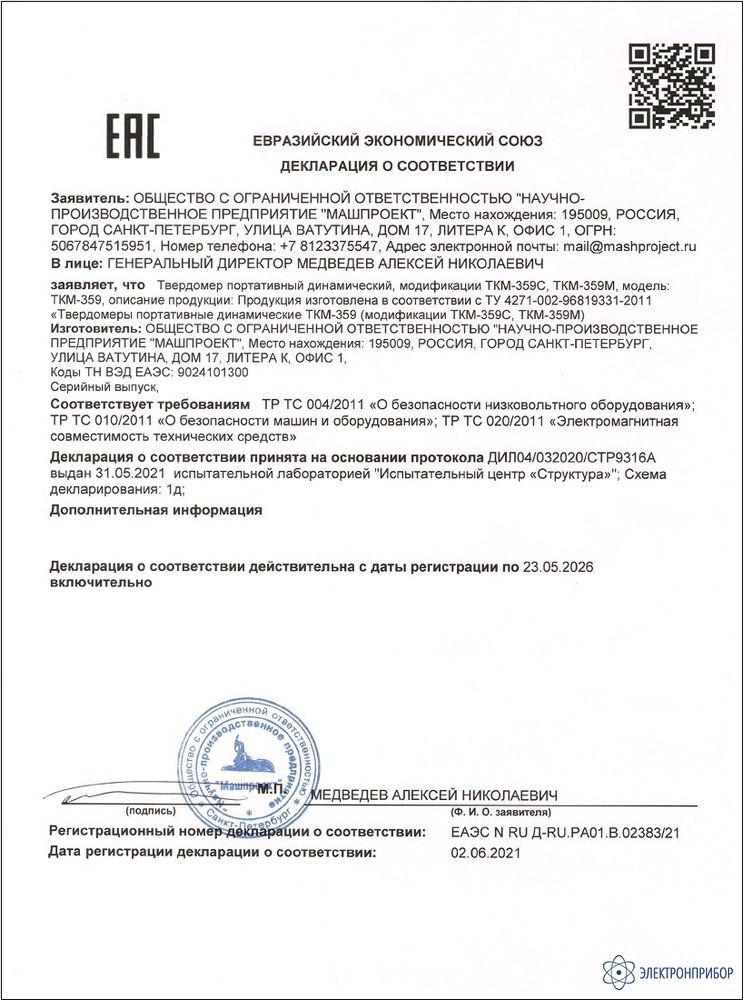 ТКМ-359C прошел Государственную метрологическую аттестацию и внесен в Госреестры СИ Российской Федерации, Республик Беларусь и Казахстан. Соответствует требованиям ТР ТС 004/2011 и ТР ТС 020/2011.