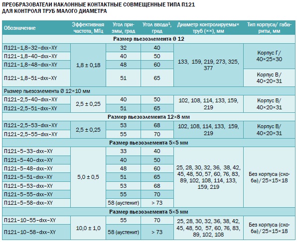 Назначение преобразователей наклонных контактных совмещенных П121 для контроля труб малого диаметра: