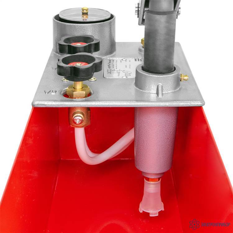 Назначение насоса опрессовочного МЕГЕОН 98050:МЕГЕОН 98050 – это ручной опрессовочный насос, предназначенный для гидроиспытаний ёмкостей, а также для контроля герметичности трубопроводных, водопроводных, отопительных и сантехнических системах, в системах пожаротушения, паровых и котельных установках, идеален для заполнения закрытых систем. Насос закреплен на баке, в который наливается рабочая жидкость, на выходе установлен манометр для контроля создаваемого давления и гибкий шланг для подсоединения к испытуемому объекту. Постоянство давления обеспечивается за счет инновационной системы клапанов. Особо прочный шарнир рычага с длинной рукояткой обеспечивает точную передачу усилий на поршень при наименьшем износе. Ёмкость из листовой стали, устойчивая к воздействиям окружающей среды и холоду. Фильтр для защиты от загрязнения насоса. Хорошо читаемая шкала манометра. Особенности насоса опрессовочного МЕГЕОН 98050:- высокая производительность;
