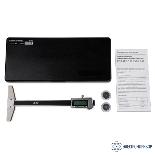 № Наименование Количество 1 Штангенглубиномер с цифровым отсчётным устройством RGK SCG-150 1 2 Футляр 1