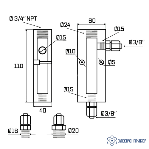 Описание акриловой проточной камеры (ячейки) на 1 электрод (до 60 градусов) 3/4" NPT AQUA-LAB AQ-CELL1-3/4: