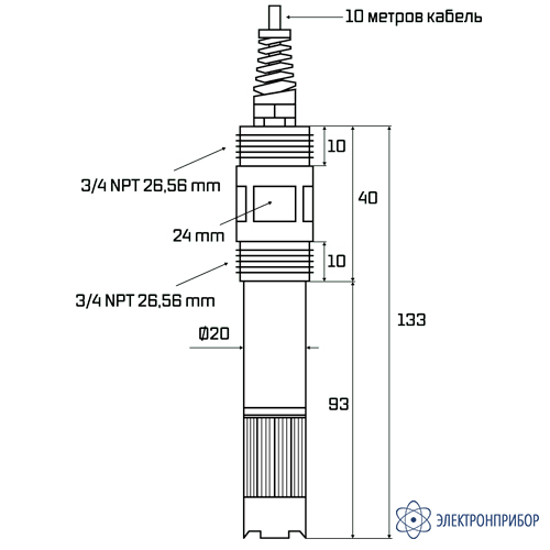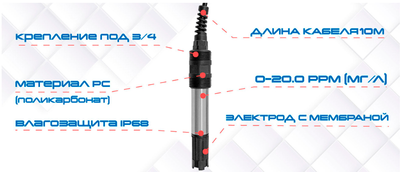Описание промышленного датчика растворенного кислорода для AQ-DO150 и AQ-DO300 AQUA-LAB AQ-DO1-EL10: