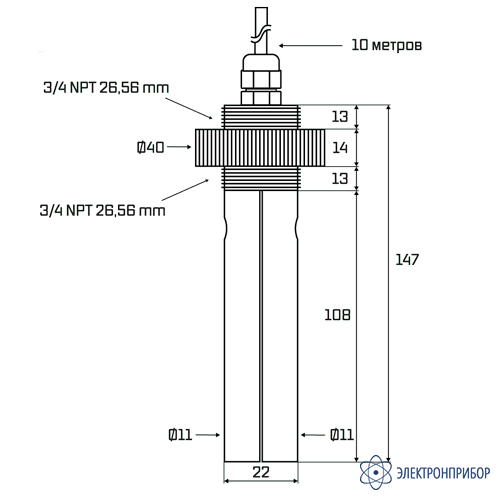 Установка через стандартный диаметр резьбы 3/4" формата NPT и запас прочности, позволяющий выдерживать давление до 6 атмосфер (0,6 Мпа), делают промышленный электрод AQ-EC-HIM универсальным решением для замкнутых контуров и напорных систем. Электрод поставляется с солидным запасом кабеля – 10 метров, что предоставляет свободу для монтажа в сложных производственных условиях. Стабильность работы также подчеркивается коэффициентом электрода, равным 30, что гарантирует высокую повторяемость точных результатов. Уверенность в качестве подтверждается не только гарантией производителя на срок до 6 месяцев, но и внесением датчика в Государственный реестр средств измерений – перечень, войти в который достойны лишь самые лучшие.