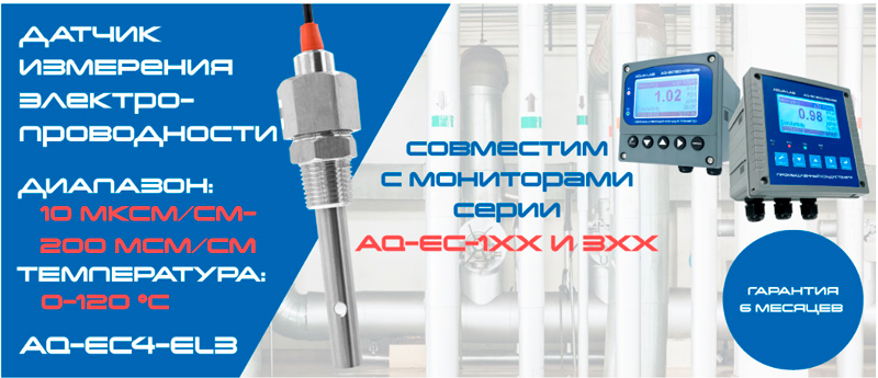Для определения удельной электропроводности различных водных и неводных растворов в больших объёмах, в том числе, в потоковом режиме, предназначен особый вид специализированных приборов – промышленные кондуктометры, к которым, ввиду особенностей эксплуатации, предъявляют более высокие требования. Своими специфическими особенностями должны обладать и промышленные электроды, такие как модель AQ-EC4-EL10 – продукт российской компании AQUA-LAB, вот уже немало лет лидирующей на рынке высокоточной контрольно-измерительной техники промышленного назначения. Датчик AQ-EC4-EL10 оптимально подходит для промышленных кондуктометров AQUA-LAB и аналогичных приборов других марок, обеспечивая покрытие потребностей промышленных предприятий практически любой направленности, от эксплуатации продукта на специальных сооружениях по водоочистке до его использования в сфере экологических исследований, на фармацевтических и пищевых производствах и т. д. Гарантийный срок, установленный производителем на электрод AQUA-LAB AQ-EC4-EL10, составляет 6 месяцев.