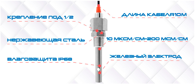 Технические и конструктивные особенности и требования к эсплуатации промышленного высокотемпературного электрода для кондуктометра AQUA-LAB AQ-EC4-EL10: