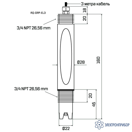 Параметр Значение AQUA-LAB AQ-PH-EL3 AQUA-LAB AQ-PH-EL3 (ATC) Диапазон измерения pH 2 - 12 Длина провода 3 метра (возможно самостоятельное увеличение до 30 метров) Цена деления pH 0,01 Погрешность измерения pH ±0.01 Температура измеряемой среды, °С 0 ~ 70 °С Встроенный температурный датчик нет AQ-PT1000 Функция температурной компенсации - есть Размеры, мм фиксируется под резьбу 3/4 -