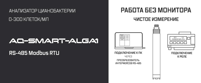 № Наименование Количество 1 Промышленный электрод для измерения уровня цианобактерий (RS-485) AQUA-LAB AQ-SMART-ALGA1 1 2 Кабель 5 метров 1 3 Инструкция 1