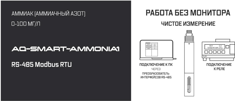 AQUA-LAB AQ-SMART-AMMONIA1 — промышленный электрод для измерения аммиака 0-100mg/l (RS-485)
