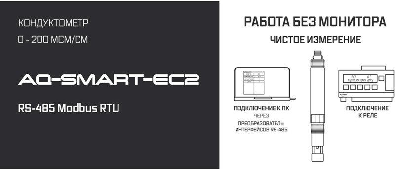 Технические характеристики промышленного EC электрода 0~200uS/cm (4-20mA) AQUA-LAB AQ-SMART-EC2: