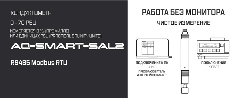 AQUA-LAB AQ-SMART-SAL2 — промышленный электрод-солемер 0~70PSU (RS-485)