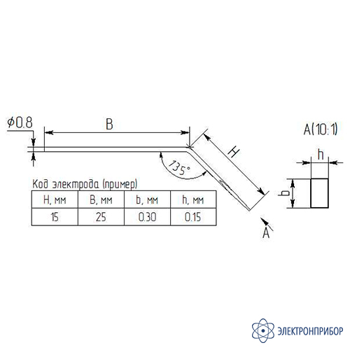 Параметр Значение Диаметр, мм 0,8 B, мм 15 H, мм 25 b, мм 0,30±0,05 h, мм 0,15±0,05 -
