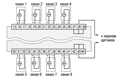 УКТ38-Щ4 имеет 8 входов для подключения измерительных датчиков.