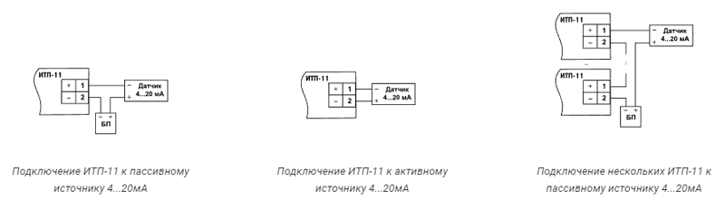Схемы подключения индикатора токовой петли ИТП-11: