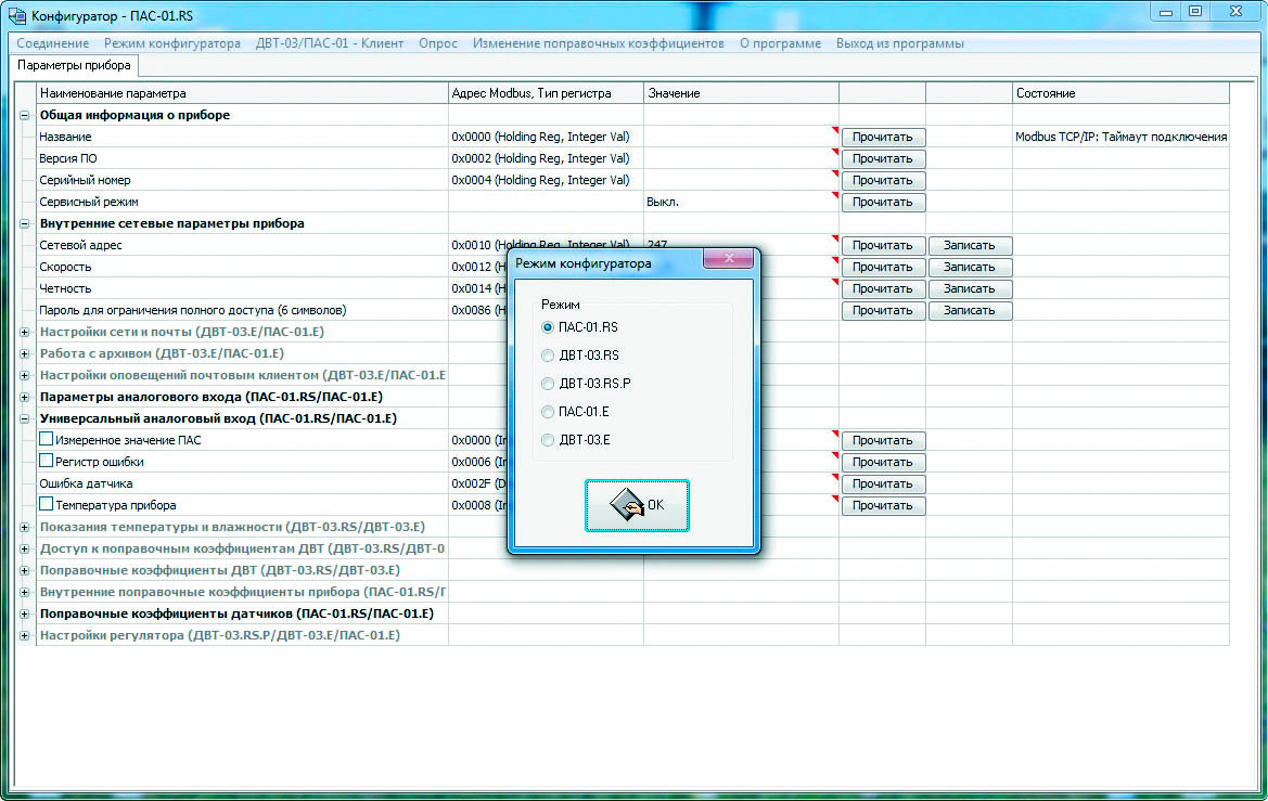 Программное обеспечение преобразователя аналоговых сигналов ПАС-01-RS: