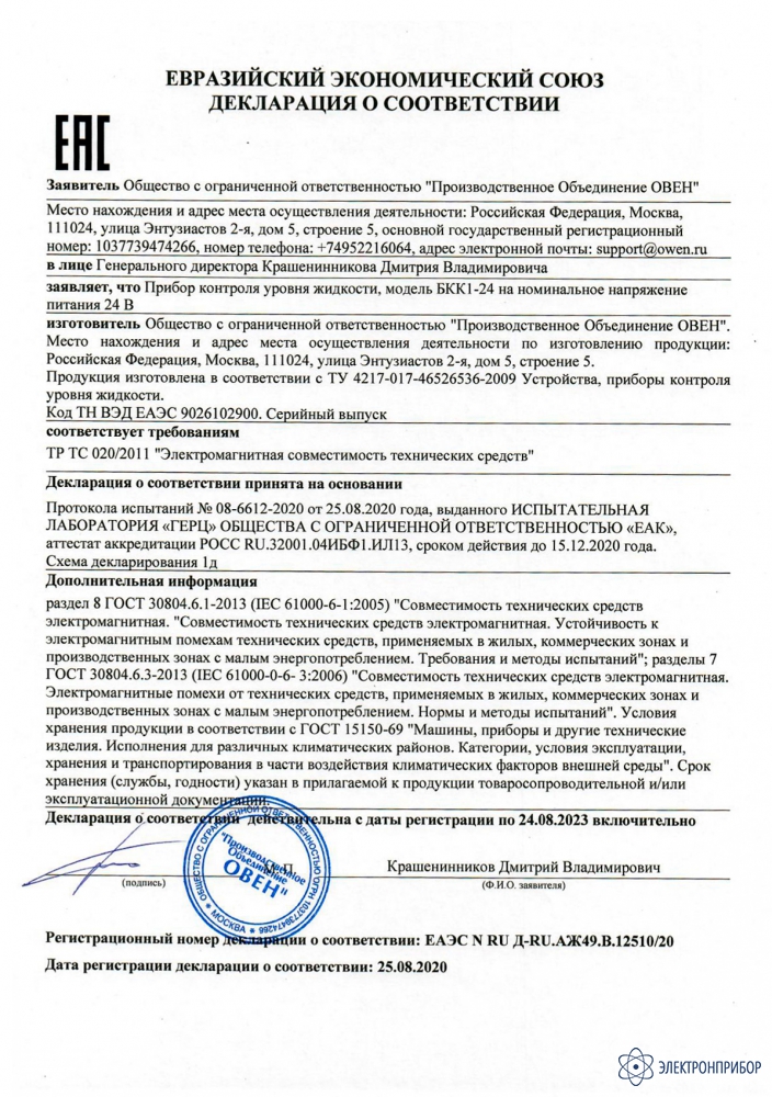 Новый прибор БКК1 линейки сигнализаторов уровня САУ, четырехканальный аналог САУ-М6 в DIN-реечном исполнении. Предназначен для отслеживания четырех уровней токопроводящей жидкости. Может использоваться как самостоятельное изделие для управления исполнительными механизмами, либо как устройство согласования кондуктометрических датчиков с ОВЕН ПЛК (или контроллерами других производителей). Прибор выпускается в корпусе с креплением на DIN-рейку типа Д3.