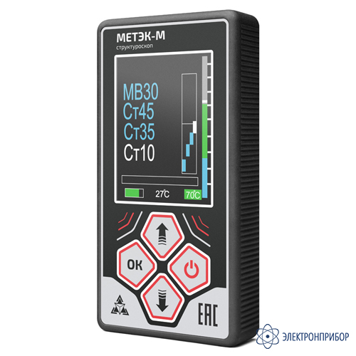 Структуроскоп МЕТЭК-М — портативный прибор с цветным графическим дисплеем и литиевым аккумулятором, позволяющий быстро и точно определить изменения в структуре и химическом составе различных сплавов, как черных, так и цветных металлов.