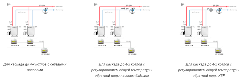 Объединяя различные алгоритмы КТР-121 в единую систему, можно получить решение для сложных схем котельных. Комбинации алгоритмов позволяют подобрать оптимальный набор автоматики для котельной.