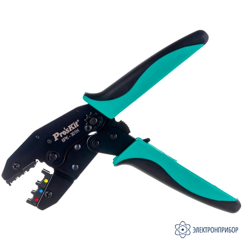 Клещи для обжима ProsKit 6PK-301H используется для обжима гаечных клемм. Удобный инструмент также оснащается трещоточным механизмом, который уменьшает общее количество усилий, необходимых для обжима.