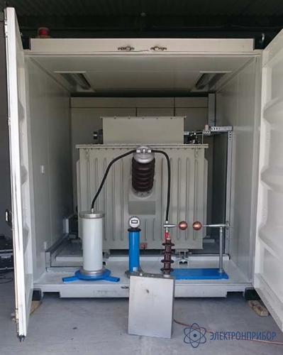 № Наименование Количество 1 Высоковольтный резонансный реактор с регулируемой индуктивностью, трансформатор-возбудитель, высоковольтный переключатель в одном баке заполненным трансформаторным маслом РРВ-250/70/35 1 2 Заземлитель выхода трансформатора электромеханический 1 3 Шаровой разрядник для защиты выхода от перенапряжения 1 4 Высоковольтный блок испытания выпрямленным напряжением со встроенным контролем тока утечки, расчетом коэффициента нелинейности, защитой от перегрева обмоток -ИПТ-80 1 5 Регулятор напряжения АТО-40/0.38/0-0.6 1 6 Цифровая автоматическая система управления и измерения ЦАСУИ Рубильник видимого разрыва 1 Контактор 1 Быстродействующая тиристорная схема защиты от КЗ и перенапряжения 1 Цифровая измерительная система ИС-50э 1 7 Контейнер - корпус 1 8 Ноутбук 1 9 Принтер лазерный 1 10 Кабель сетевой 4х16 - 50 метров на барабане 1 11 Провод рабочего заземления 6 мм2 - 50 метров на барабане (сверхгибкий, в прозрачной силиконовой оболочке) 1 12 Провод защитного заземления 16 мм2 - 30 метров на барабане (сверхгибкий, в прозрачной силиконовой оболочке) 1 13 Провод высоковольтный (сверхгибкий, силиконовая резина) – 20м 1 14 Стойки диэлектрические с опорами для ограждения установки 4 15 Барабан со шнуром ограждения 20 метров 1 16 Руководство по эксплуатации 1 17 Метрологический аттестат на измерительное оборудование 1 18 Программа и методика периодической аттестации 1 -