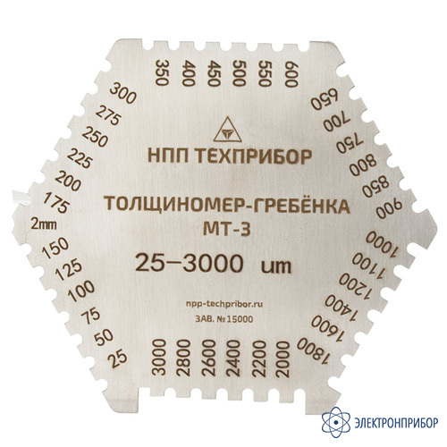 Толщиномер-гребенка из нержавеющей стали МТ-3 предназначена для измерения толщины не отвердевшего слоя покрытия на поверхностях различного профиля.