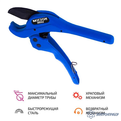 МЕГЕОН 98002 - это высокоэффективный ножевой инструмент, предназначенный для резки водопроводных труб из металлопласта (PAP, PP-ALUX), полиэтилена (PE, PE-X, PE-RT) и полипропилена (PPB, PPH, PPR, PP-FIBER, PP-RC, PP-RCT, FV-PLAST), имеющих наружный диаметр до 36 миллиметров. Прост в использовании, имеет рычажно-храповой механизм и оптимальную форму лезвия для уменьшения усилия необходимого при отрезании. Изготовление ножа из инструментальной стали с тефлоновым покрытием позволило уменьшить силу трения. Лёгкий и прочный алюминиевый корпус с П-образным профилем обеспечивает беспрецедентную надёжность. Удобные анатомические ручки позволяют рукам меньше уставать. С помощью инновационной возвратной пружины делать рез можно значительно быстрее. Труборез будет незаменимым помощником при монтаже и ремонте систем отопления и водоснабжения. Кроме этого он найдёт применение в садовом хозяйстве.