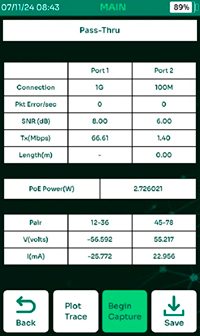 Сочетание кабельного тестера AEM и адаптера AD-NET-PASSTHRU позволяет собирать и записывать данные тестирования PoE на длительном промежутке времени. Вы можете анализировать собранные данные через приложение на своём компьютере или ноутбуке.