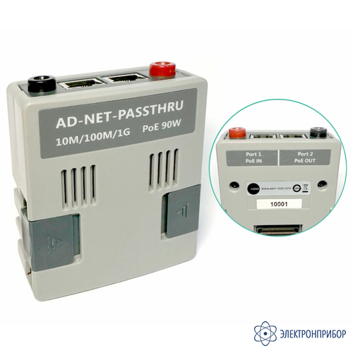 Тестовый адаптер AD-NET-PASSTHRU позволяет пользователям подключать кабельный тестер TestPRO CV100 в разрыв линии между коммутатором и конечным устройством, например камерой PoE, и проводить тестирование во время использования конечного устройства.