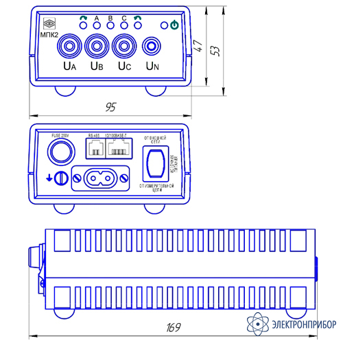 Для прибора МПК2, имеющего следующие характеристики: габаритный размер корпуса 95×53×175 мм, входной параметр – напряжение с номинальным значением 100 В, наличие интерфейса Ethernet («витая пара»), интерфейс RS485, вариант зажимов 3: