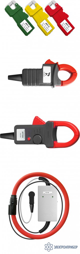 - допускает подключение любых из четырех типов клещей с разными диапазонами измеряемой силы тока: 5А, 300А, 800А, 3000А;